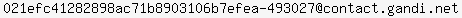Personal data access and use are governed by French law, any use for the purpose of unsolicited mass commercial advertising as well as any mass or automated inquiries (for any intent other than the registration or modification of a domain name) are strictly forbidden. Copy of whole or part of our database without Gandi's endorsement is strictly forbidden.